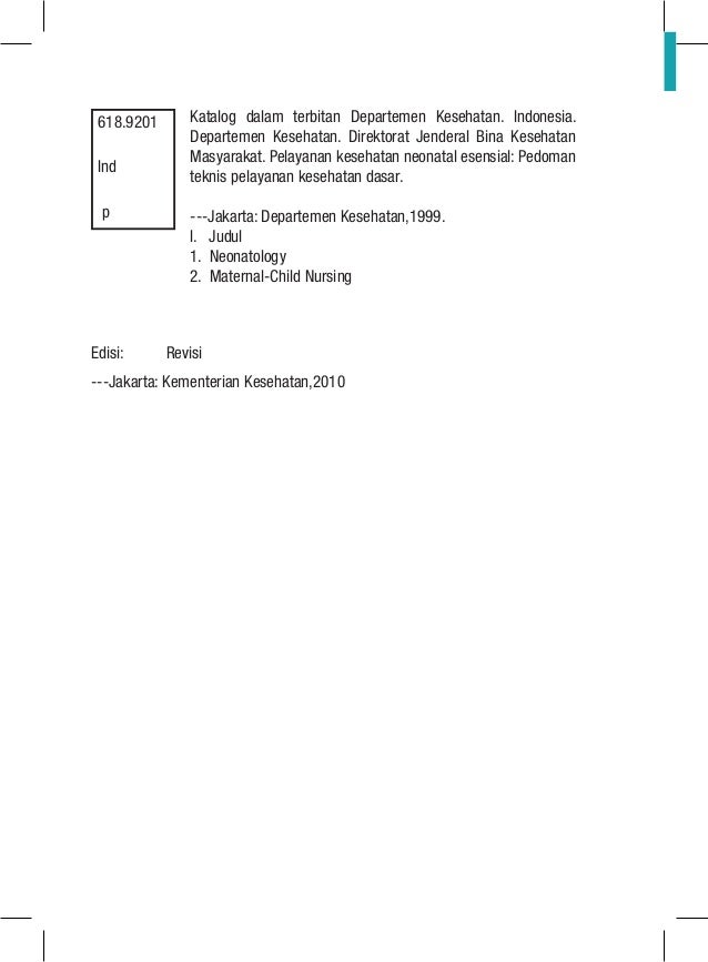 Buku Saku Pelayanan Kesehatan Neonatal Esensial oleh kementrian kesehatan RI Terbitan 2015 buku saku pelayanan kesehatan neonatal esensial Terbitan 2015 Opsi Pencarian.