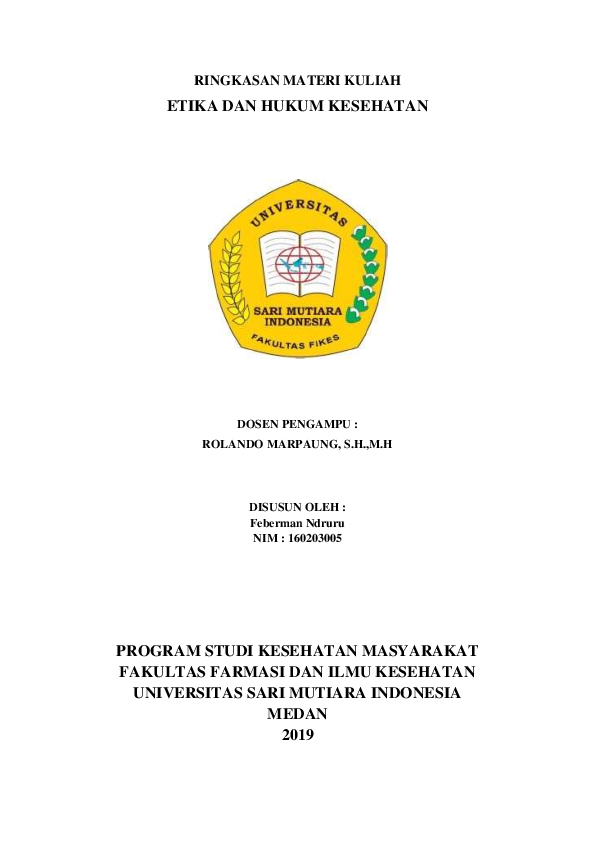 PDF Ringkasan Materi Kuliah Etika Dan Hukum Kesehatan