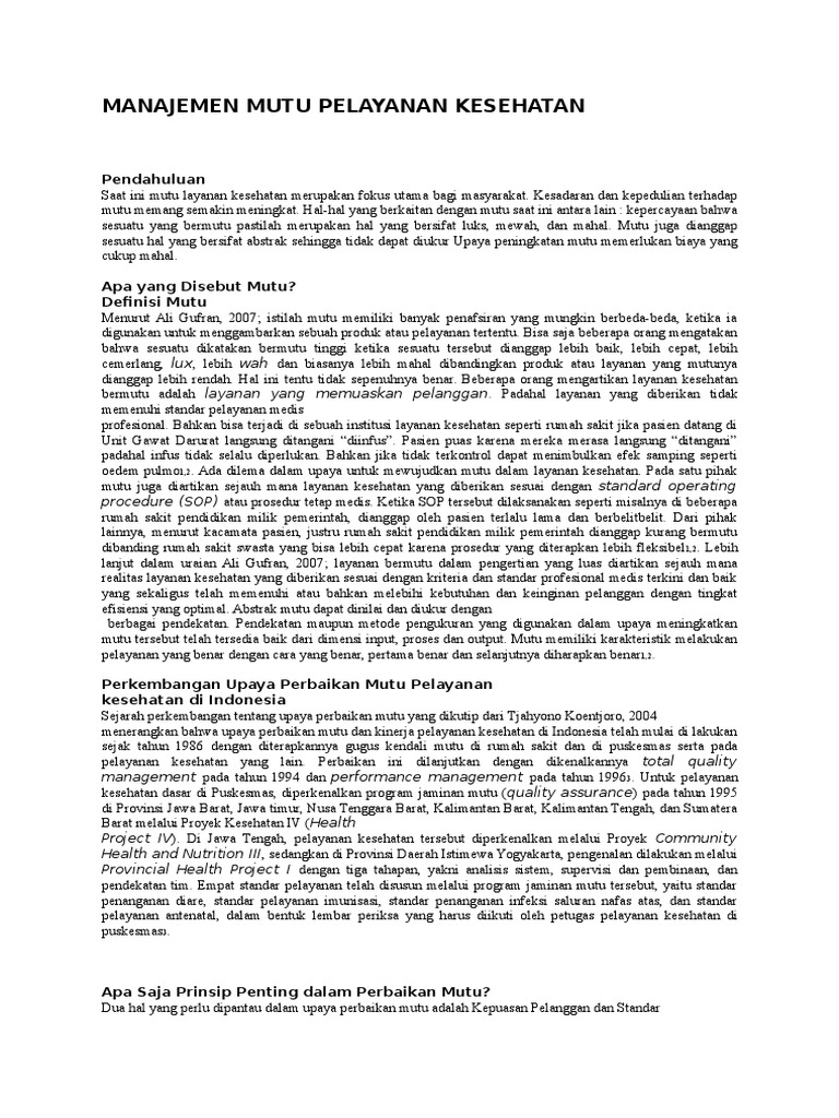 Manajemen Mutu Pelayanan Kesehatan Jurnal