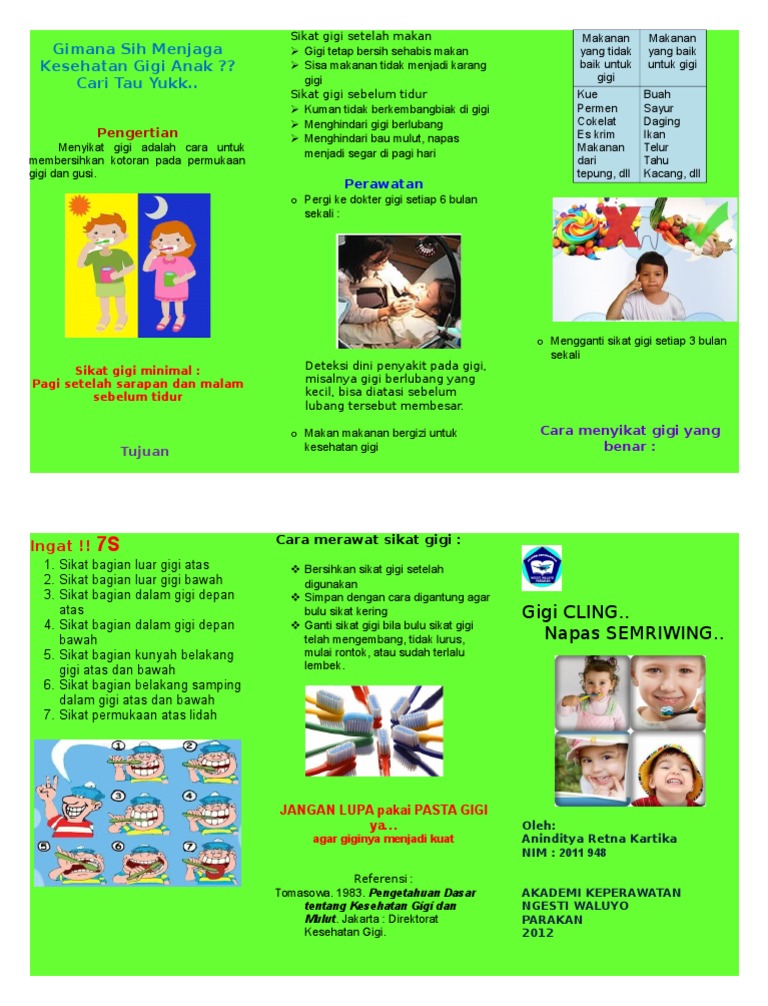 Yang berisikan materi tentang proses terjadinnya karang gigi dan lubang gigi Kuesioner yang digunakan untuk mengukur tingkat pengetahuan dan sikap siswa tentang kesehatan gigi Alat Hasil penelitian menunjukkan bahwa promosi kesehatan gigi dan mulut dengan menggunakan media leaflet dapat.