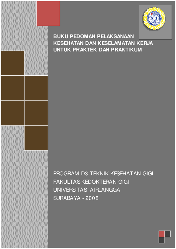Kesehatan dan keselamatan kerja 1 BUKU PEDOMAN PELAKSANAAN KESEHATAN DAN KESELAMATAN KERJA UNTUK PRAKTEK DAN PRAKTIKUM PROGRAM D3 TEKNIK KESEHATAN GIGI FAKULTAS KEDOKTERAN GIGI UNIVERSITAS AIRLANGGA SURABAYA - 2008 f BUKU PEDOM AN PELAKSANAAN KESEHATAN DAN KESELAM ATAN KERJA.