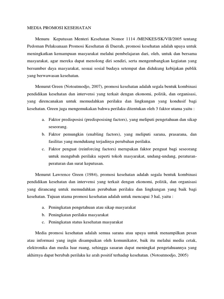 Promosi Kesehatan Ahmad Kholid Rp55000 Seiring dengan perkembangan ilmu dan teknologi khususnya dalam bidang kesehatan sangat diperlukannya upaya-upaya sosialisasi maupun peningkatan pengetahuan tentang kesehatan Transformasi pengetahuan tersebut tidak terlepas dengan metode strategi dan penggunaan media dalam promosi kesehatan.
