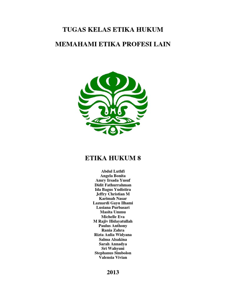 Tugas Etika Hukum Memahami Etika Kedokterankelas Ethum 8
